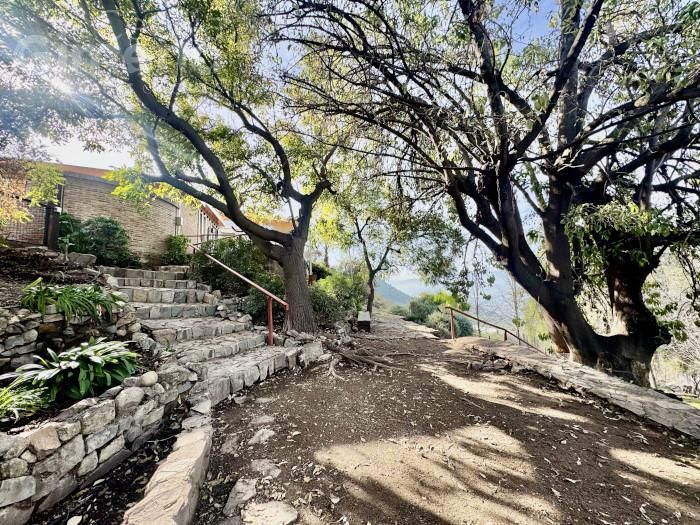 - bonito jardín con desniveles, frutales