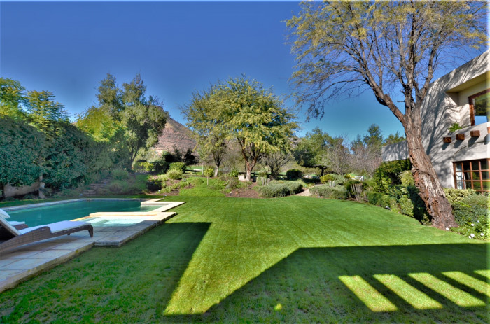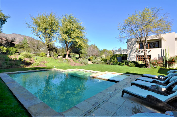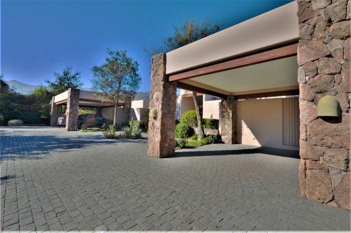 Es una casa moderna, estilo llamado “Southwest Territorial”, arquitectura traída de condominios de golf desde Arizona, USA, casa diseñada para el lugar por un arquitecto de casas exclusivas y de reconocido prestigio. Se ubica en un entorno único, un jardín con rincones entretenidos que otorgan privacidad, en donde es posible disfrutar de los paisajes y la naturaleza del exclusivo Club de Golf Hacienda Chicureo. Su diseño en L permite orientar la casa y sus distintas áreas habitables hacia el nororiente, logrando una luminosidad única. La casa está emplazada en la mitad del hoyo 18 y a pasos caminando hasta el Quincho y Club House, lo que le da una ventaja única en su ubicación.