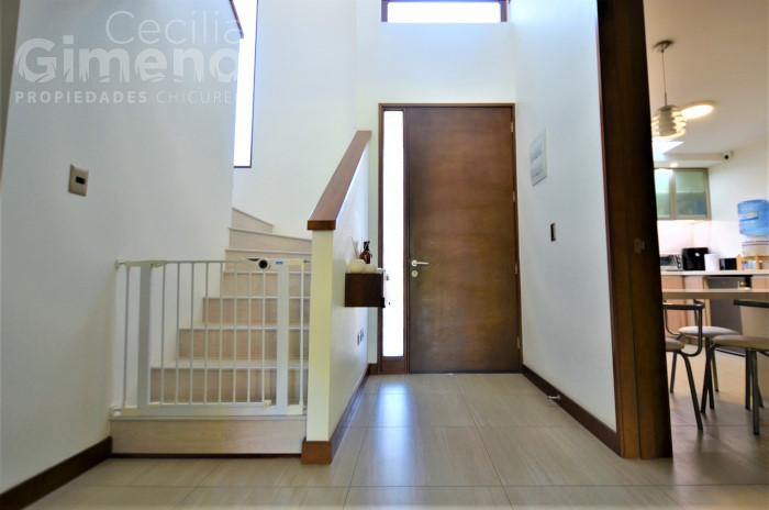 - hall de acceso luminoso con doble altura, piso de porcelanato