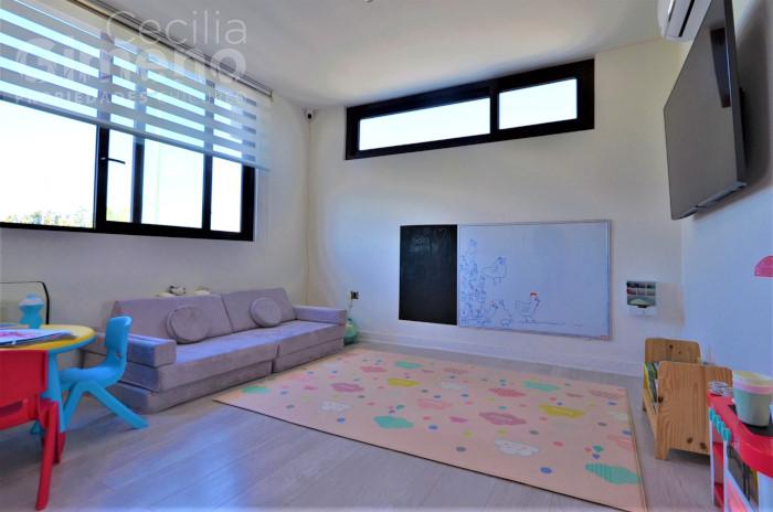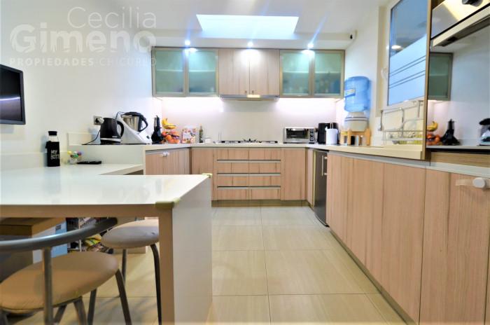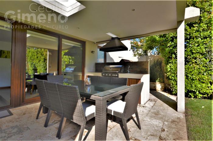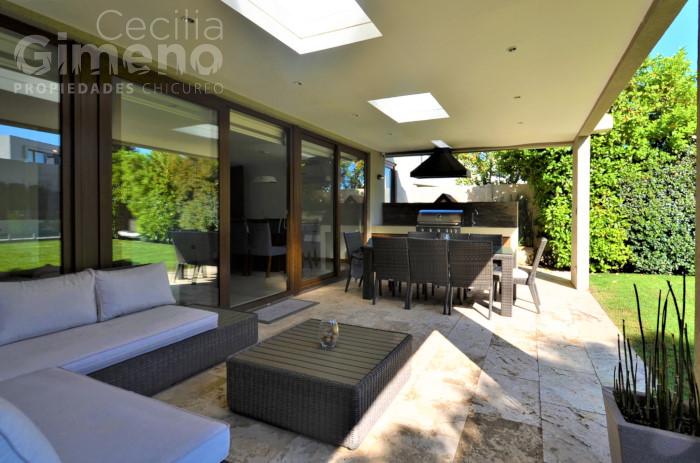 - terraza techada con lucarnas, piso de mármol travertino, quincho