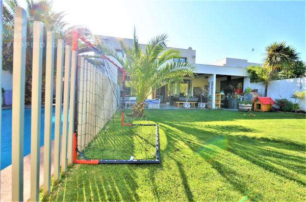 - piscina con reja, terraza deck y cascada