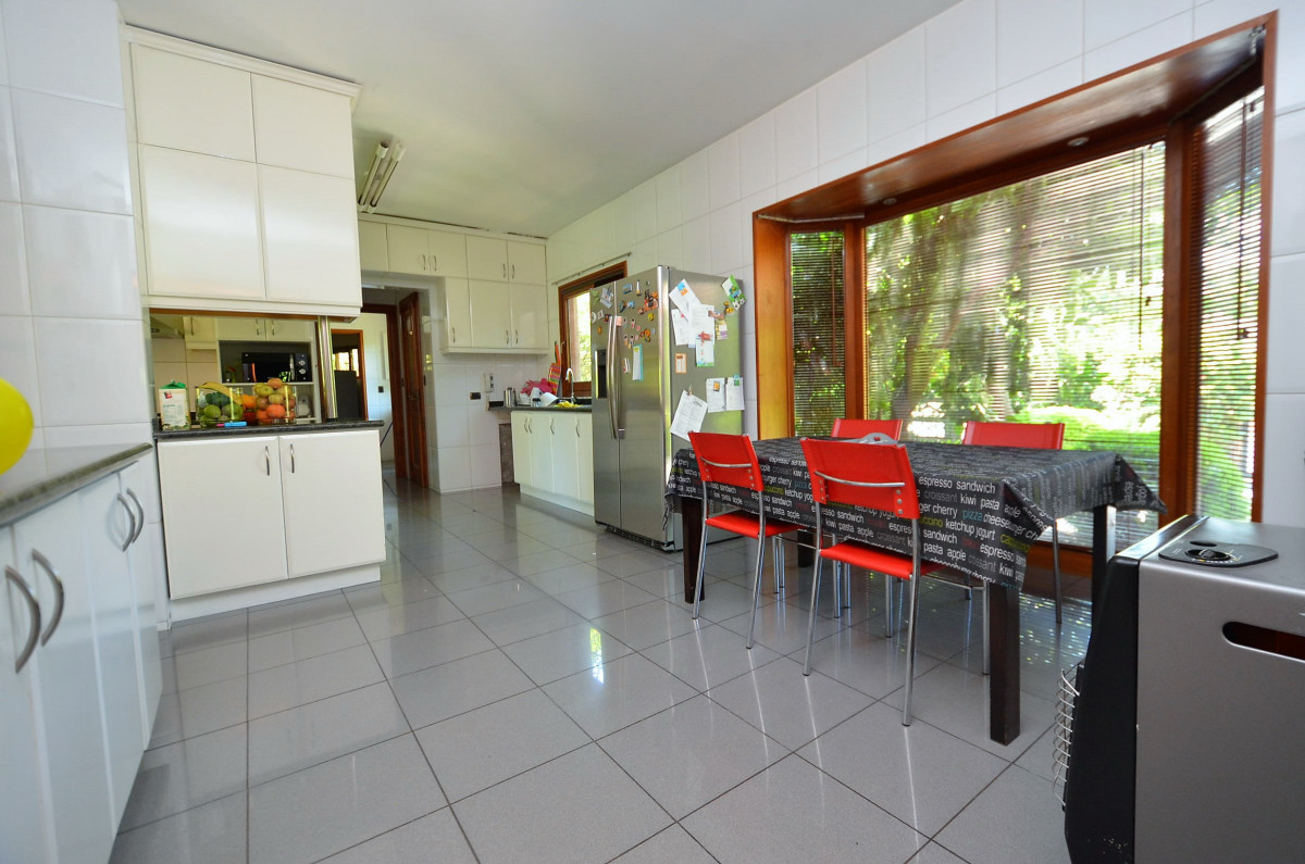- gran cocina con comedor de diario, muebles con cubiertas de granito, equipada con encimera-horno-campana