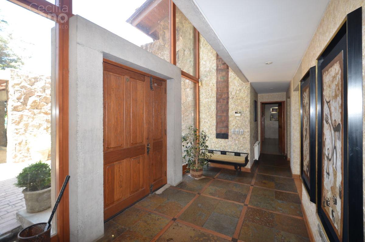 - Hall de acceso con doble altura con piso en piedra pizarra oxidada y madera