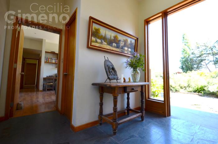 - hall de acceso con vista al jardín y piso de piedra pizarra