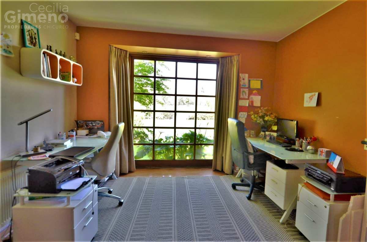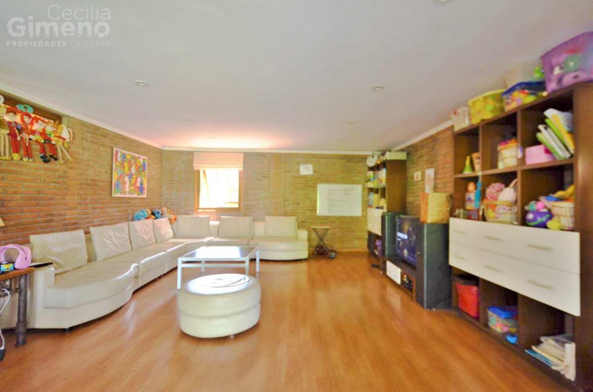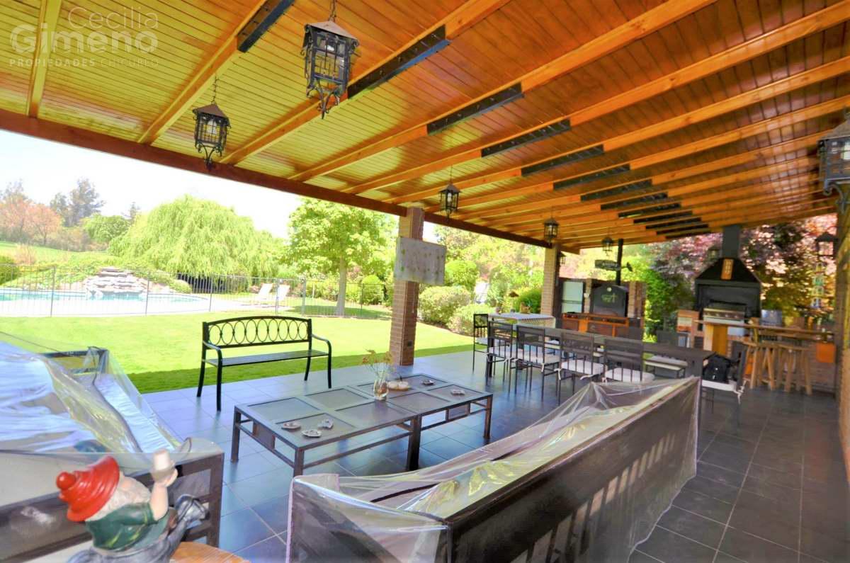 Estacionamiento techado para 4 autos más visitas, terraza techada y gran quincho con horno, jardín con riego automático, piscina con reja, bodega.
