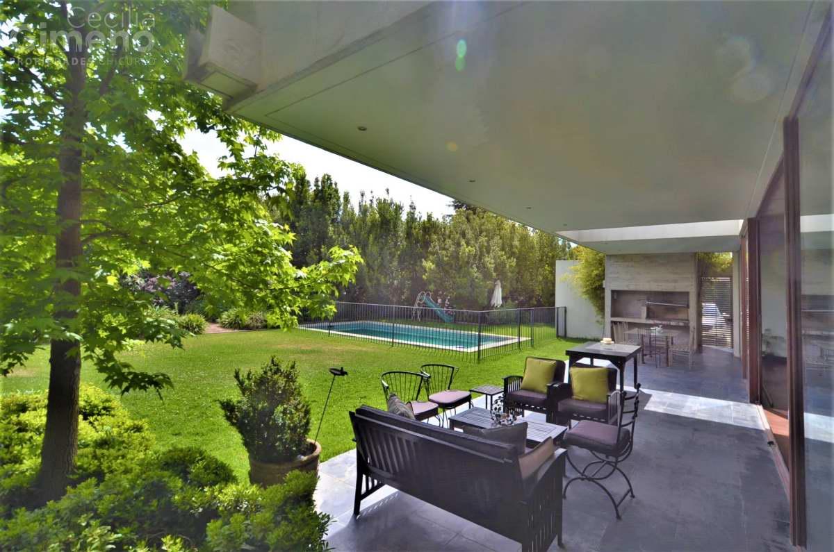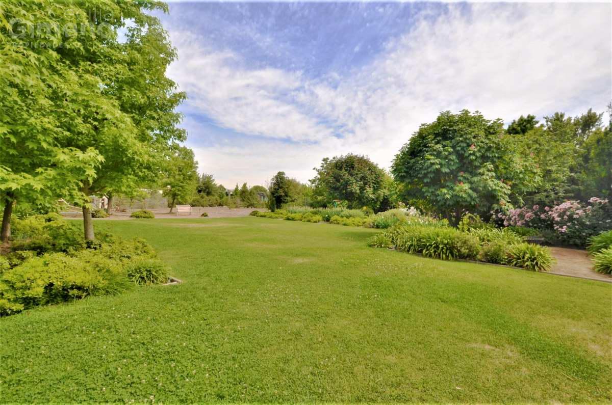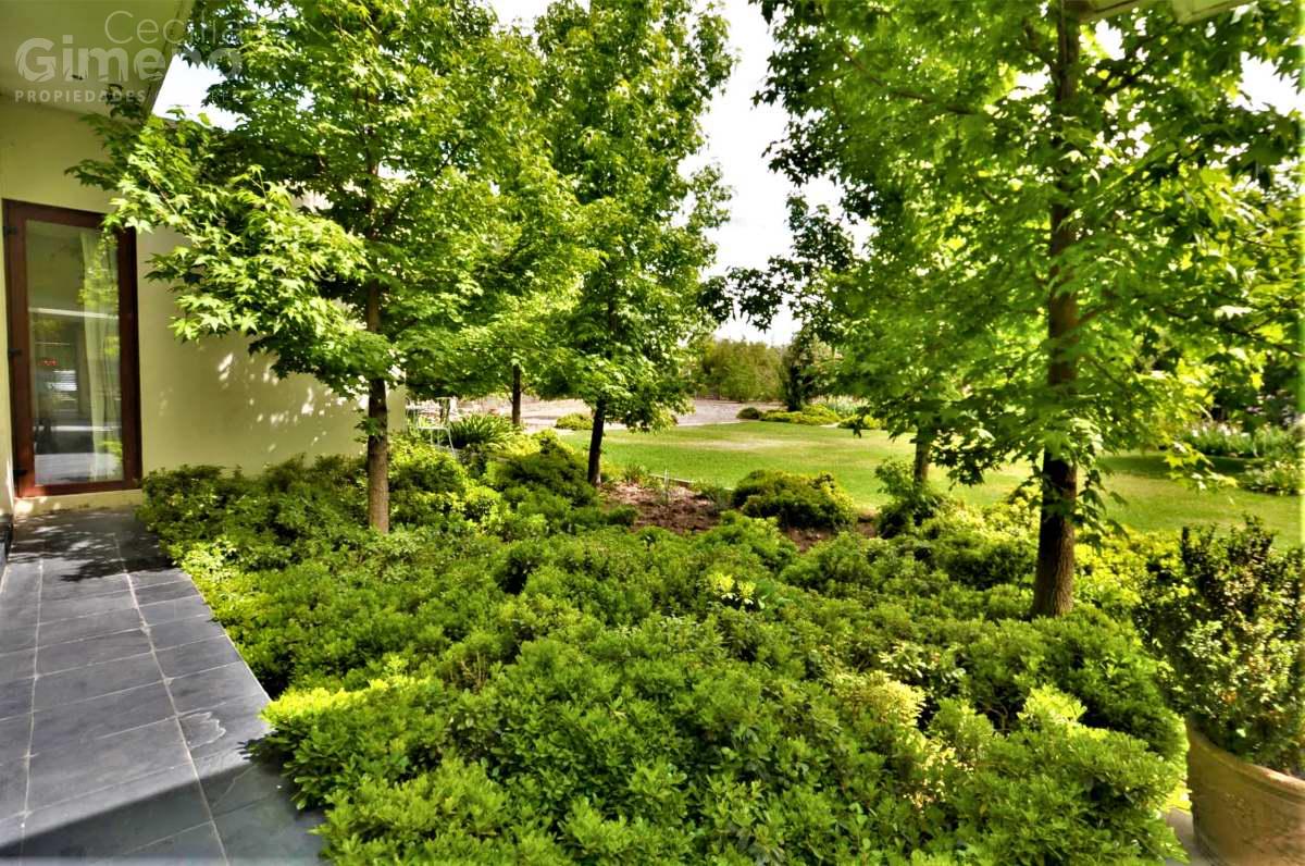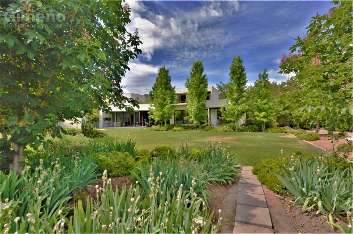 Gran casa mediterránea con jardín consolidado y rodeada de casas en condominio con seguridad permanente y accesos controlados.