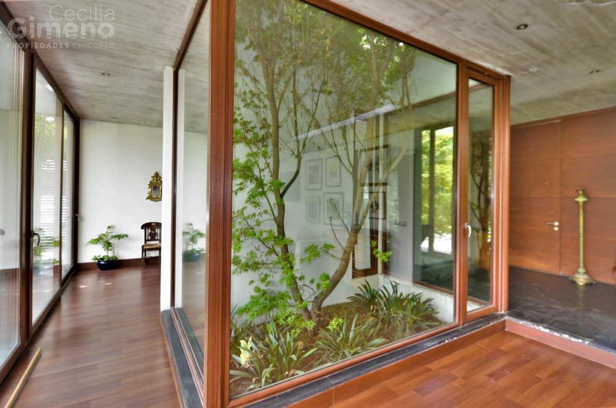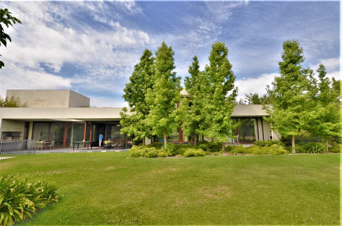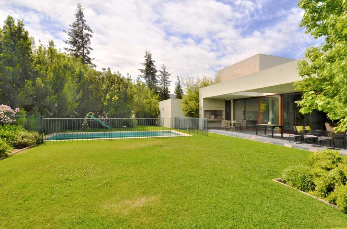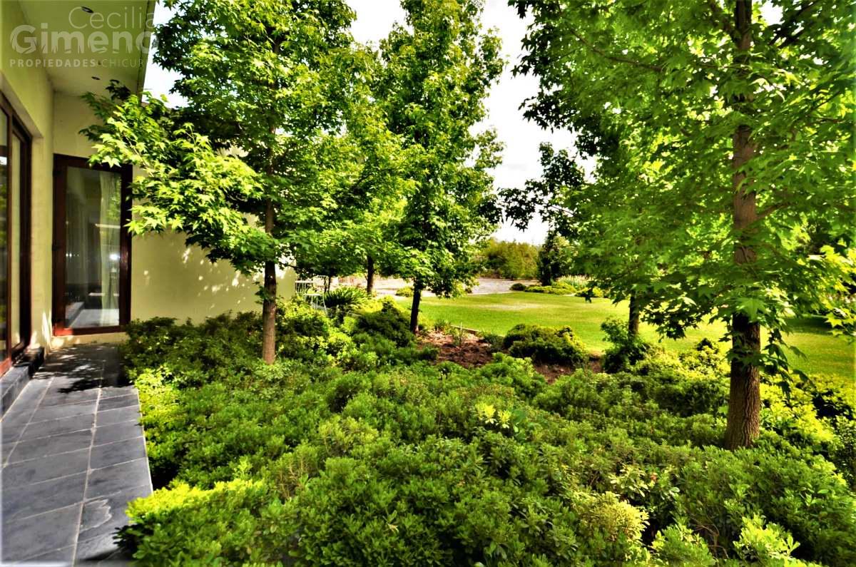 Gran casa mediterránea con jardín consolidado y rodeada de casas en condominio con seguridad permanente y accesos controlados.