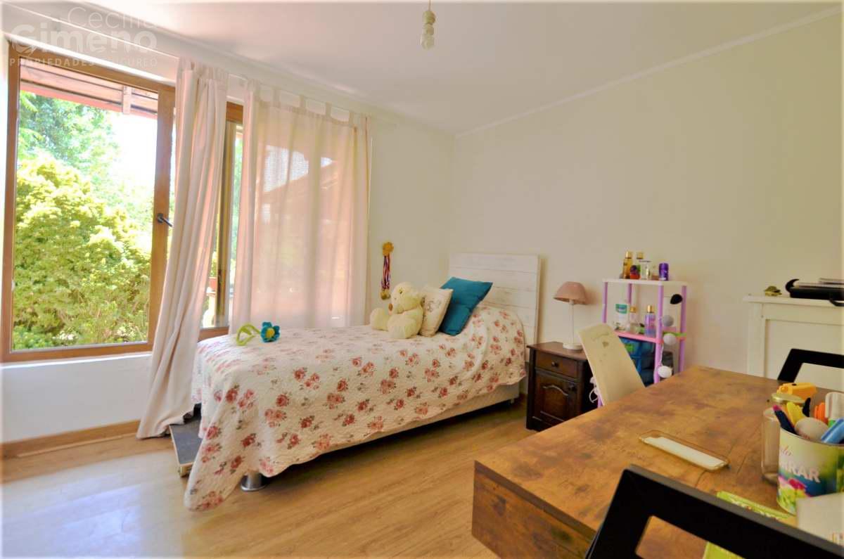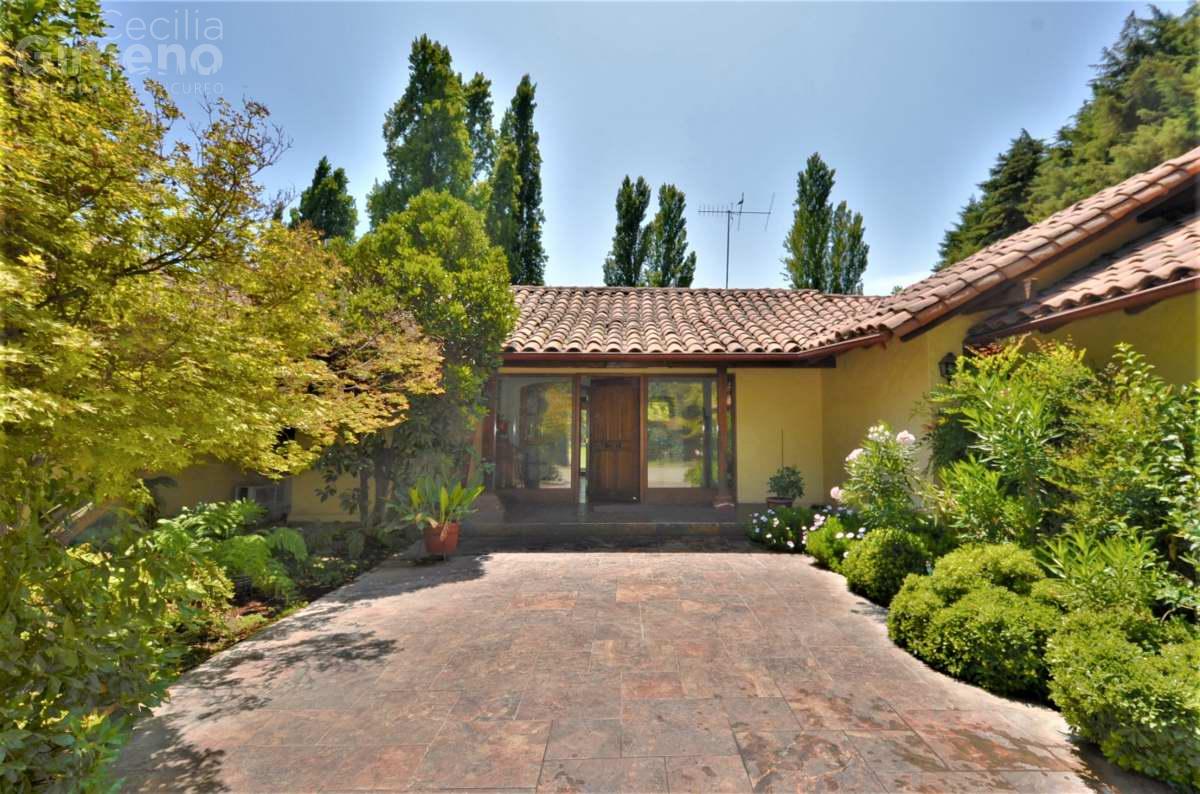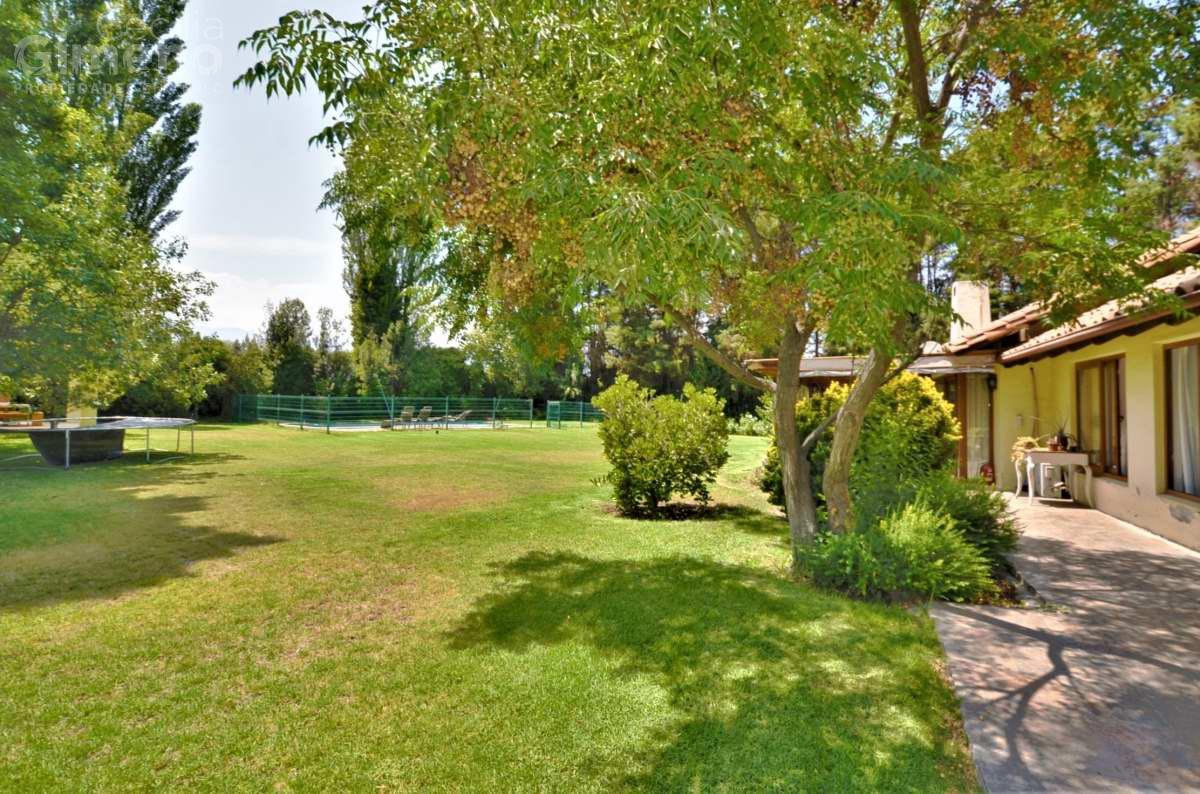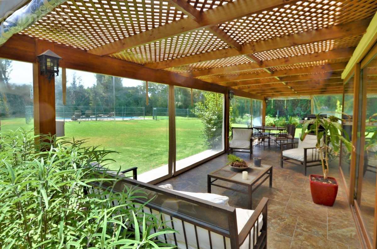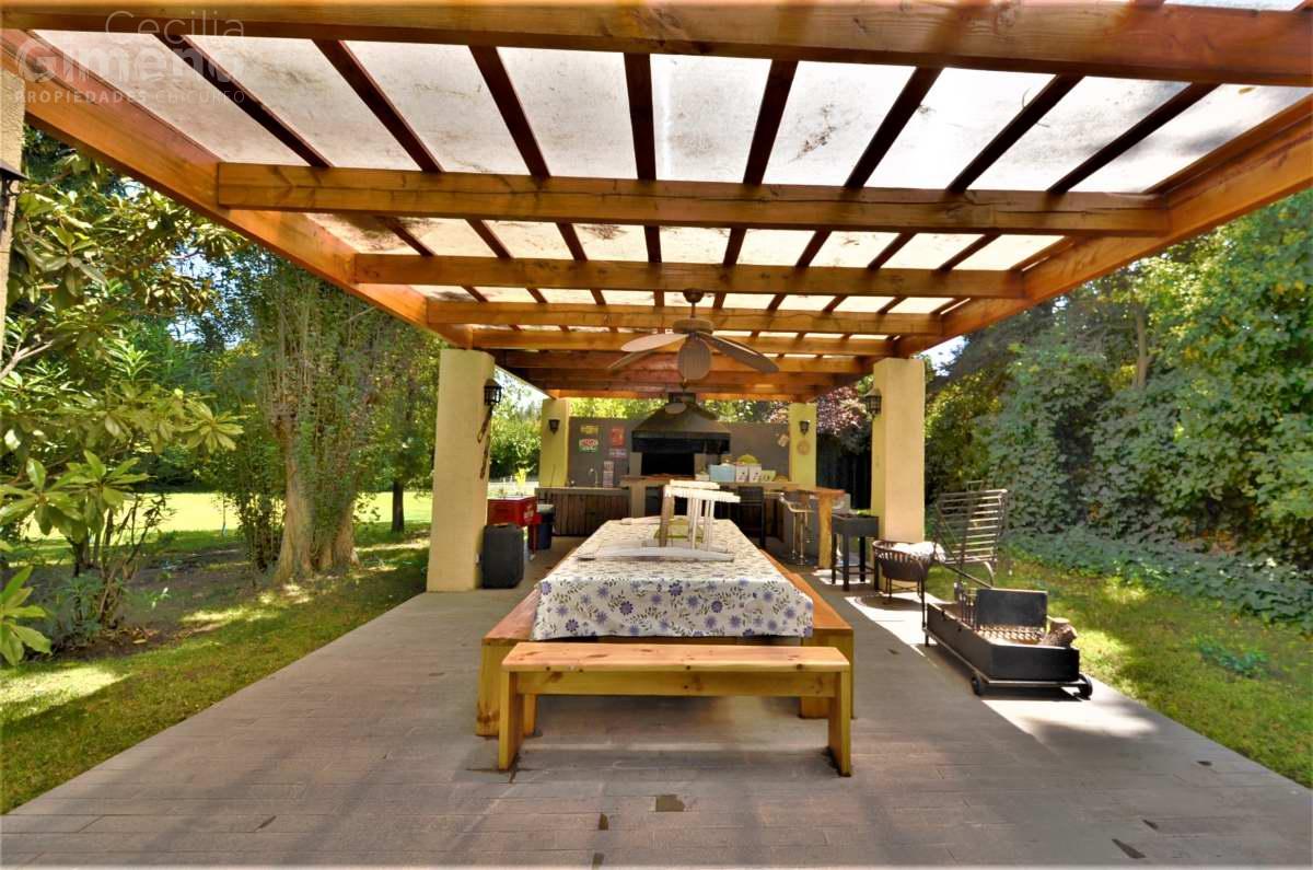 Portón automático, estacionamiento techado para 2 autos más visitas, amplia terraza techada, jardín consolidado con riego automático, piscina con protección, gran quincho con parrilla en obra.
