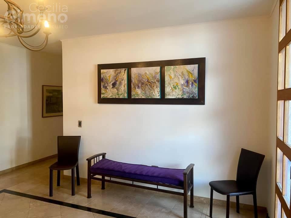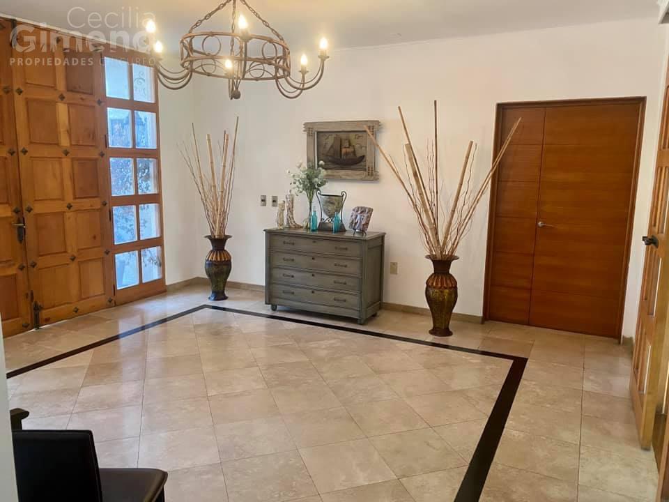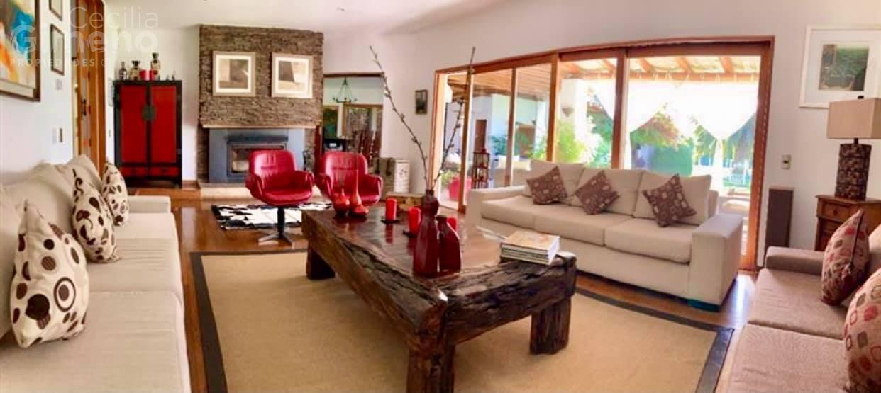 Gran hall de acceso con piedra de Huasco, baño de visitas, living con bosca empotrada en muro de piedra con salida a terraza techada, amplio comedor, ambos con piso de madera mara boliviana. Espaciosa cocina, 2 despensas, 2 dormitorios de servicio cada uno con baño, sala de lavandería.