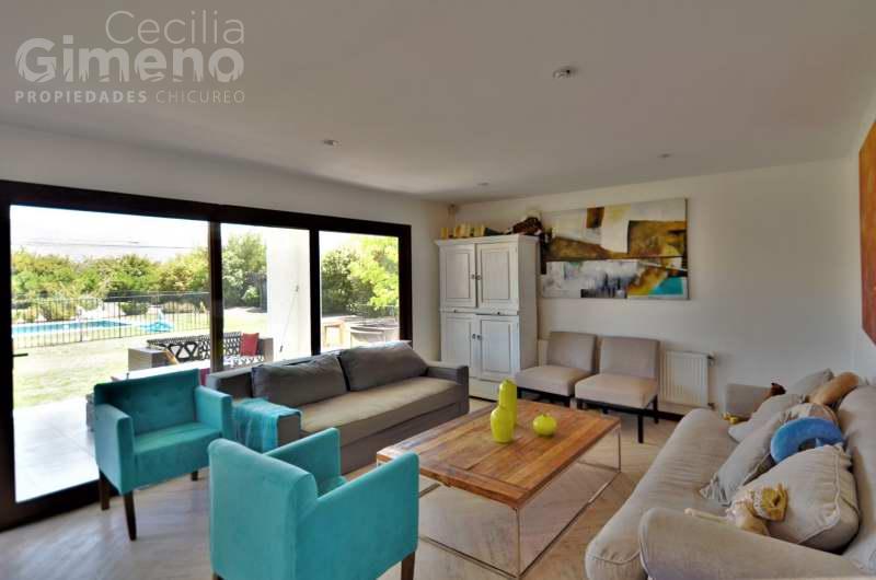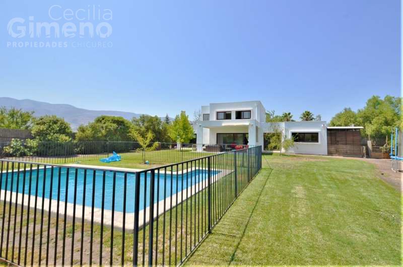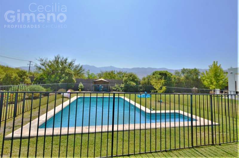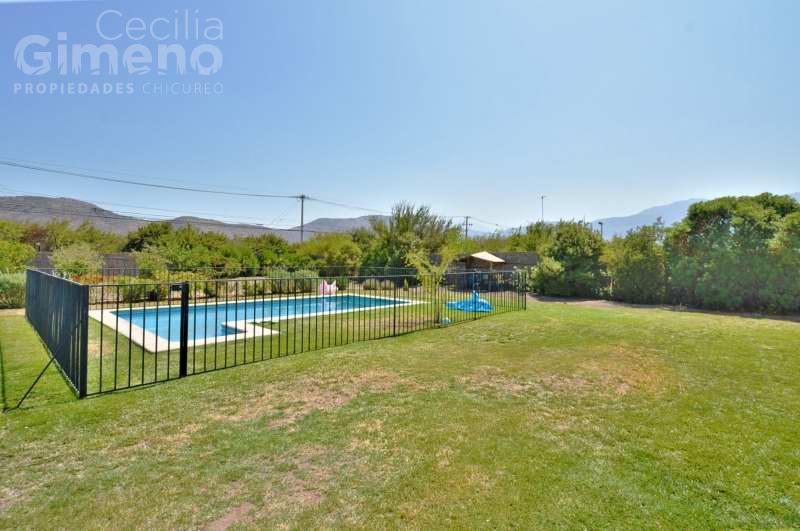 Portón automático, terraza techada, jardín con riego automático, piscina, huerto.