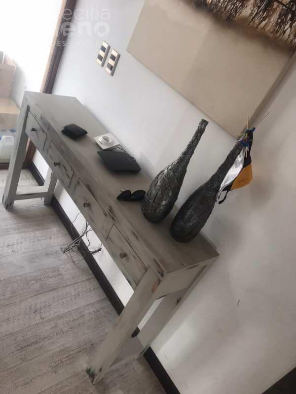 Hall de acceso luminoso, baño de visitas completo, living con salida a terraza techada, comedor independiente. Cocina con comedor de diario isla, equipada con encimera-horno-campana, muebles con cubiertas de granito, despensa, logia, pieza y baño de servicio.