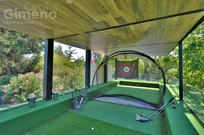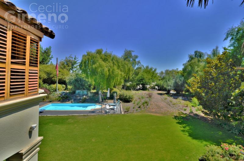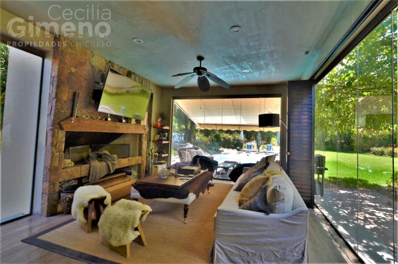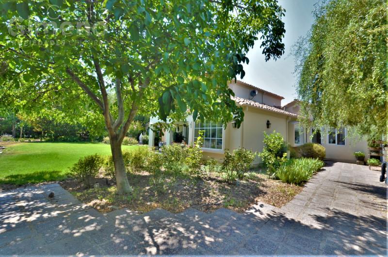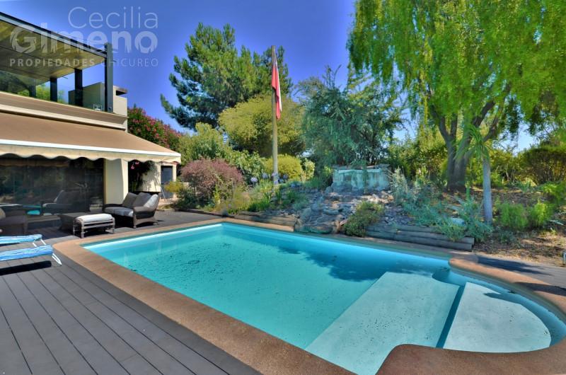 Portón automático, terraza techada y gran quincho con sala de estar, jardín con riego automático.