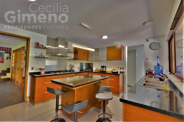 - cocina con mesón isla, equipada con encimera-campana-horno, lavaplatos doble, despensa