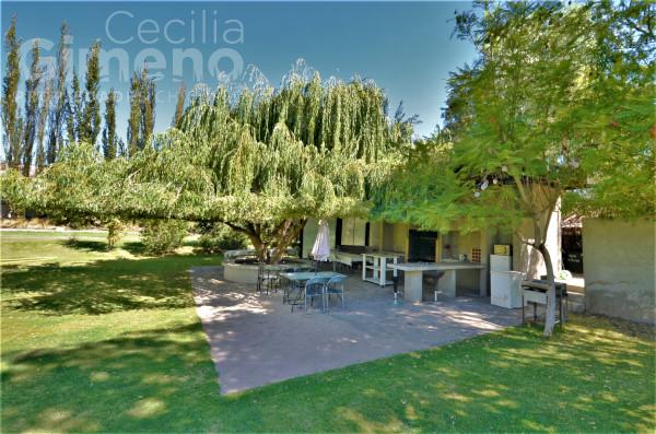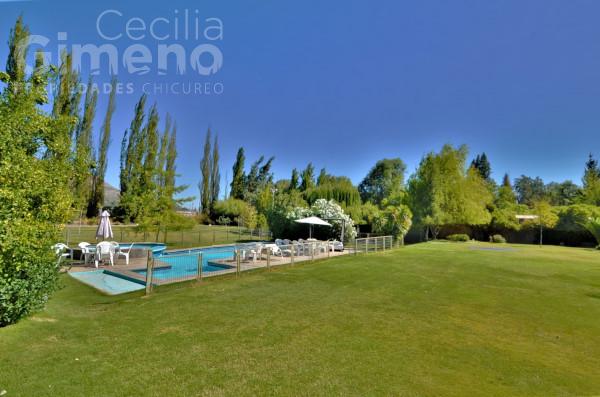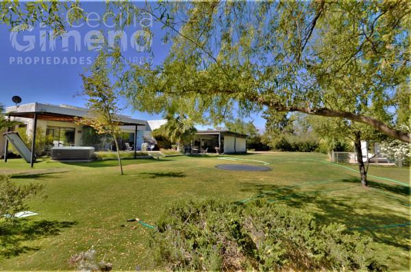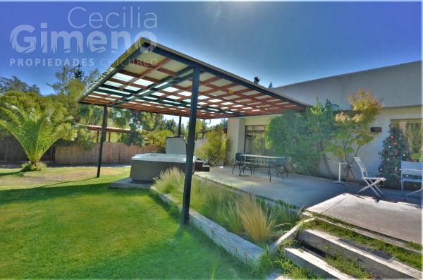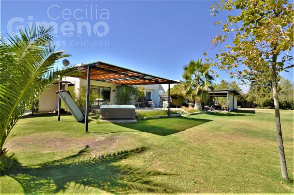 Portón automático, estacionamiento techado para 2 autos, terraza techada, quincho con mueble en obra y con 2 baños, bonito jardín formado, piscina con reja, jacuzzi