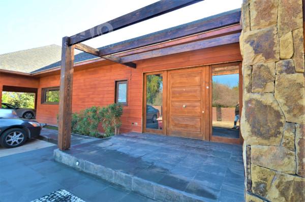 Casa en condominio con acceso a autopista Los Libertadores y camino nuevo que conecta con Piedra Roja. El condominio tiene seguridad 24/7, áreas verdes con canchas de golf, club house, centro ecuestre y plazas de juegos.