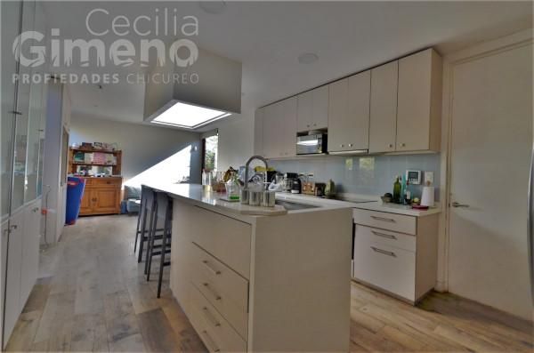 - cocina con estar familiar, comedor de diario en mueble isla, equipada con encimera-campana-horno