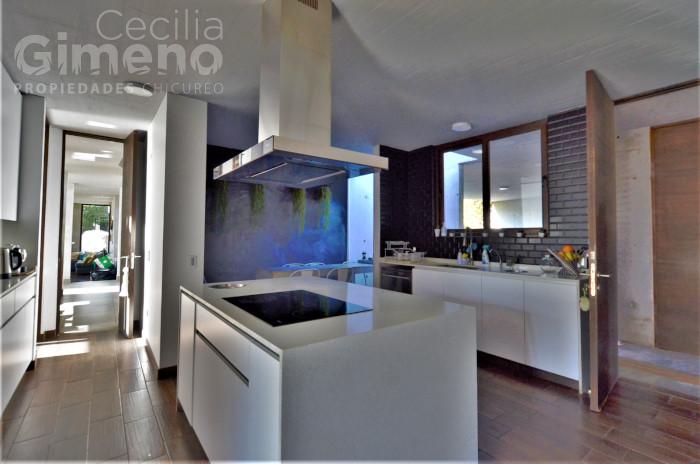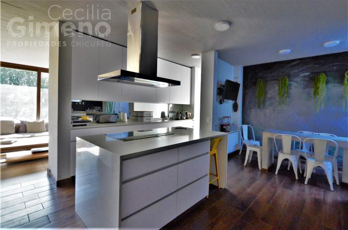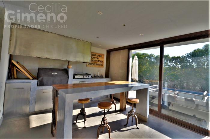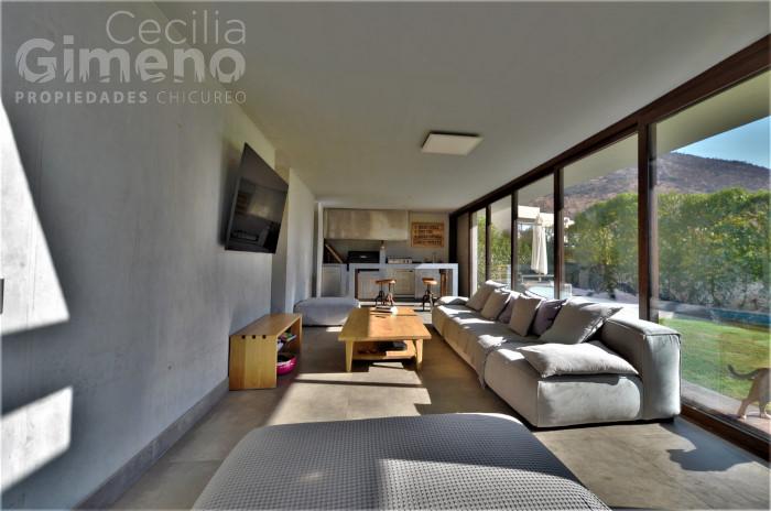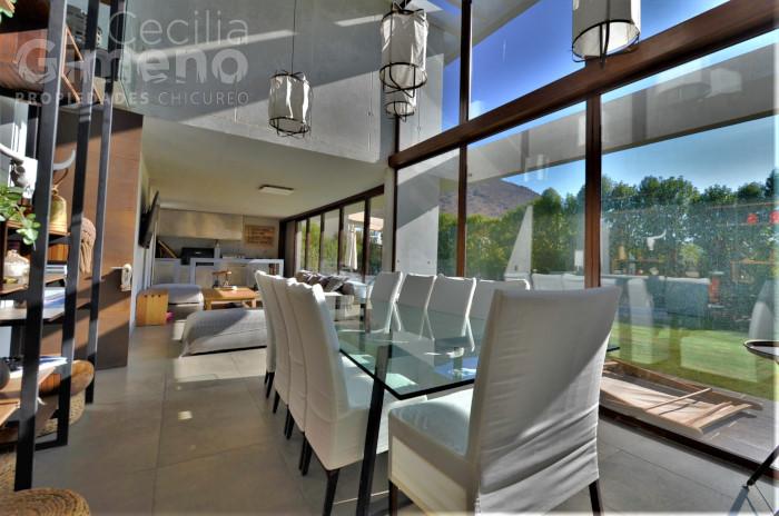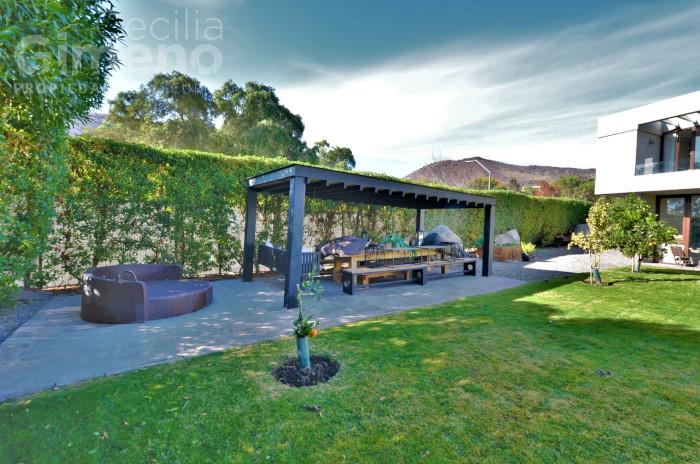 - quincho integrado al comedor, completamente cerrado con ventanales que se pliegan por completo , con mesón, lavacopas, campana