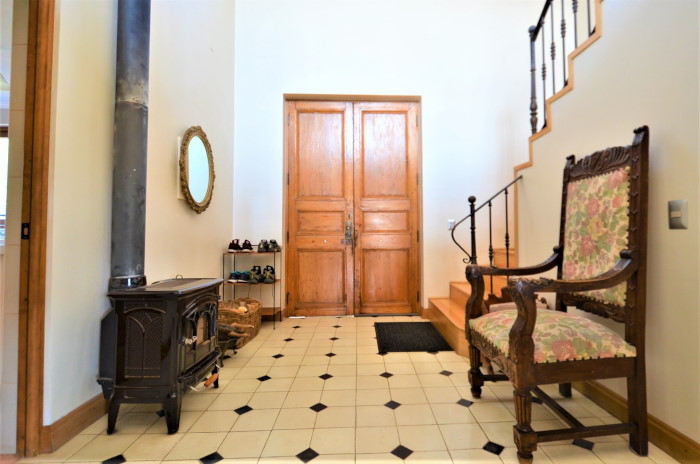 - gran hall de acceso con doble altura, estufa a leña