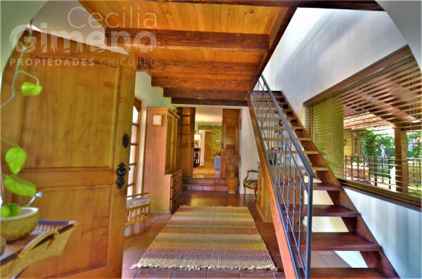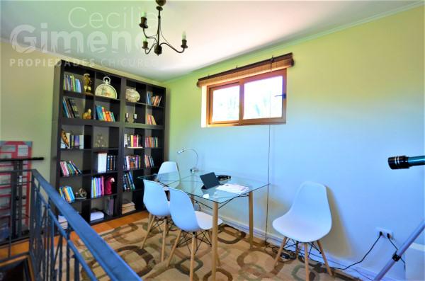 Casa chilena de buenos espacios con jardín consolidado y en condominio.