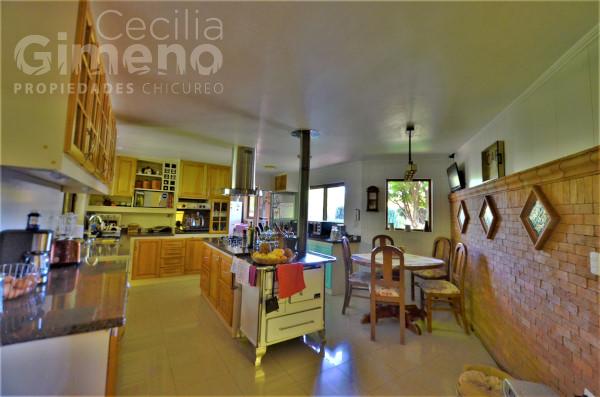-cocina central equipada con encimera-campana-horno, espacio para comedor de diario, cocina a leña