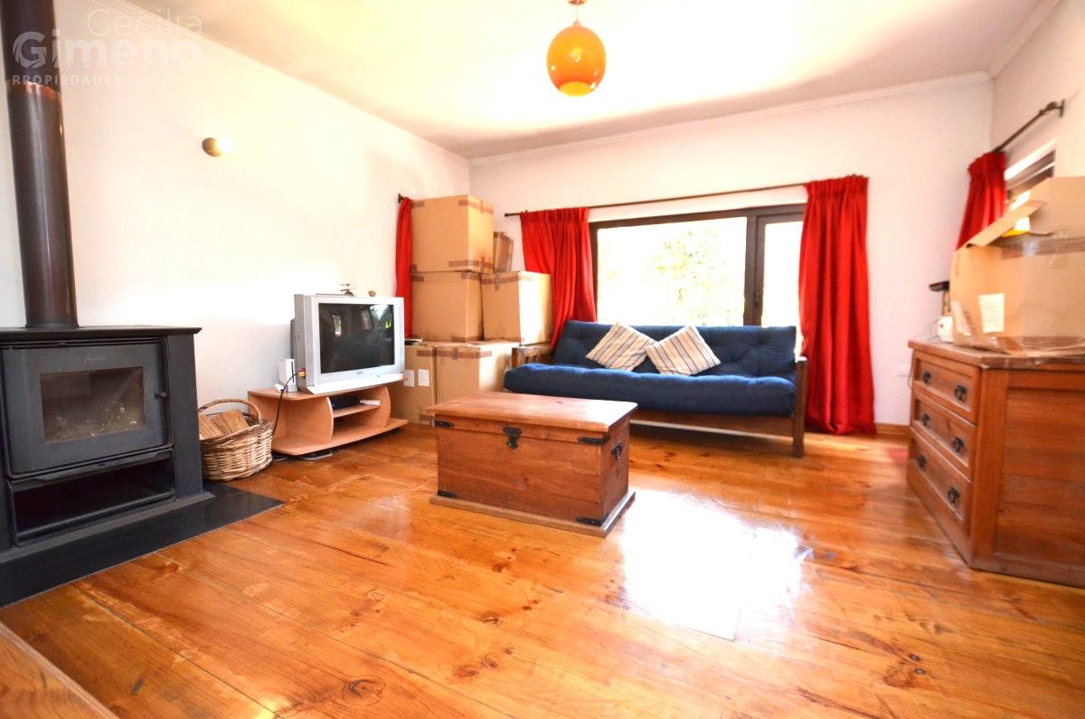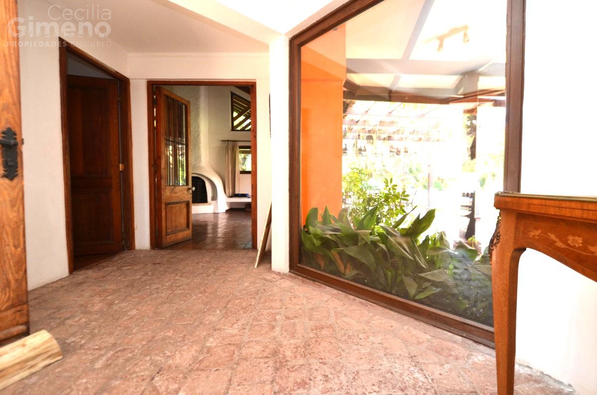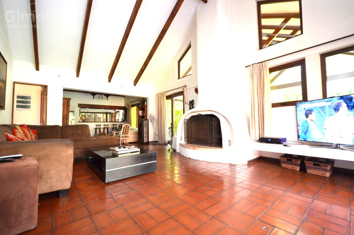 - amplio living con techo de doble altura con vigas a la vista y chimenea estilo francés