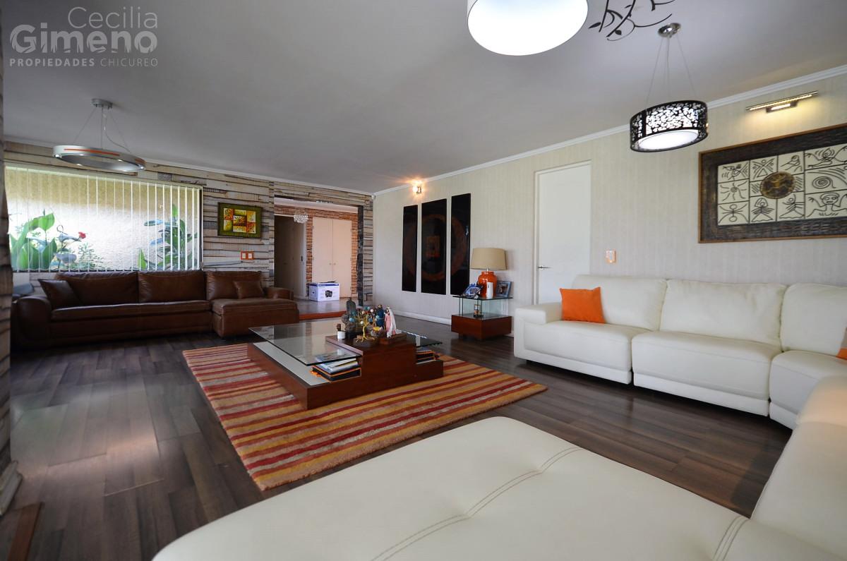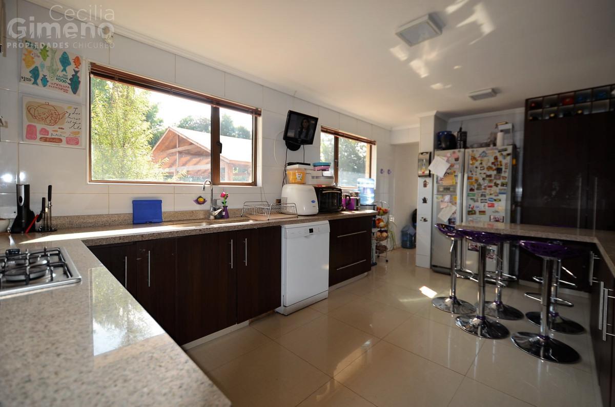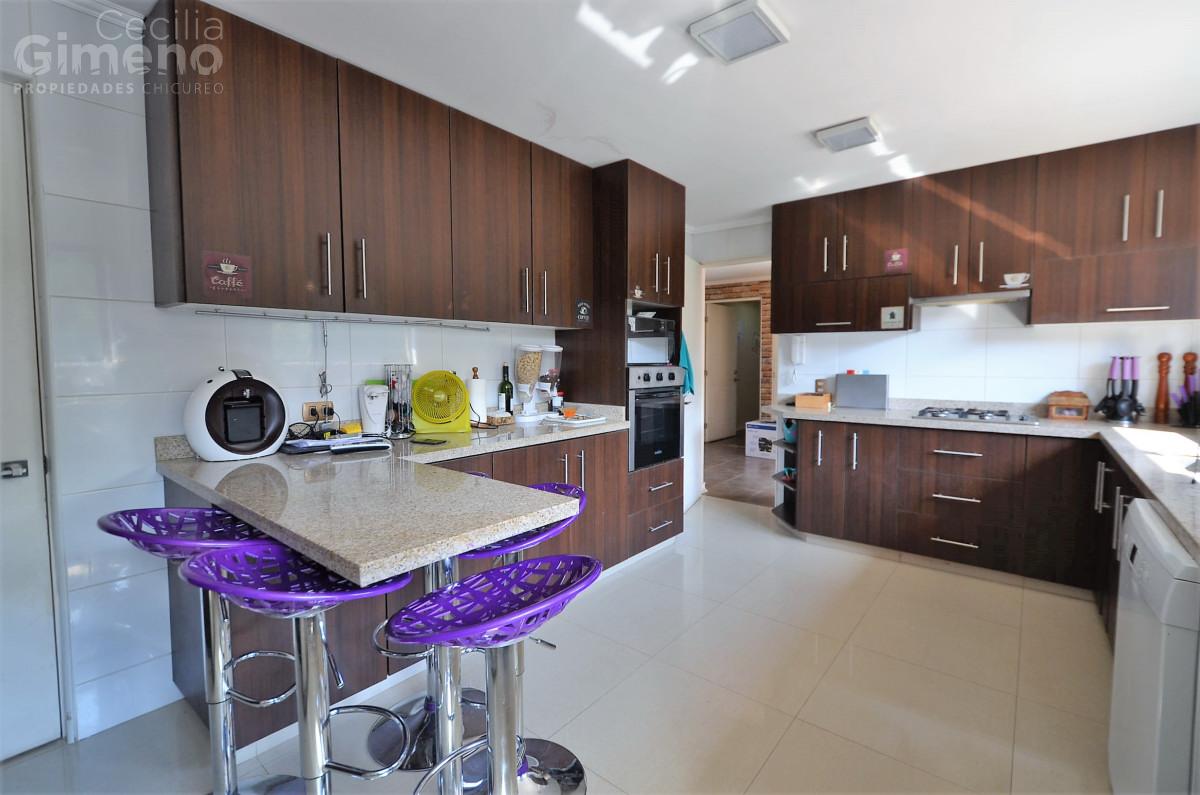 Hall de acceso, baño de visitas, gran living con comedor separado y estufa a leña. Cocina con comedor de diario, muebles con cubiertas de granito, equipada con encimera-horno-campana, dormitorio de servicio con baño, lavadero, patio de servicio.