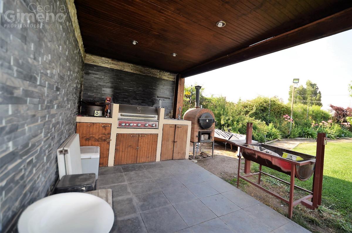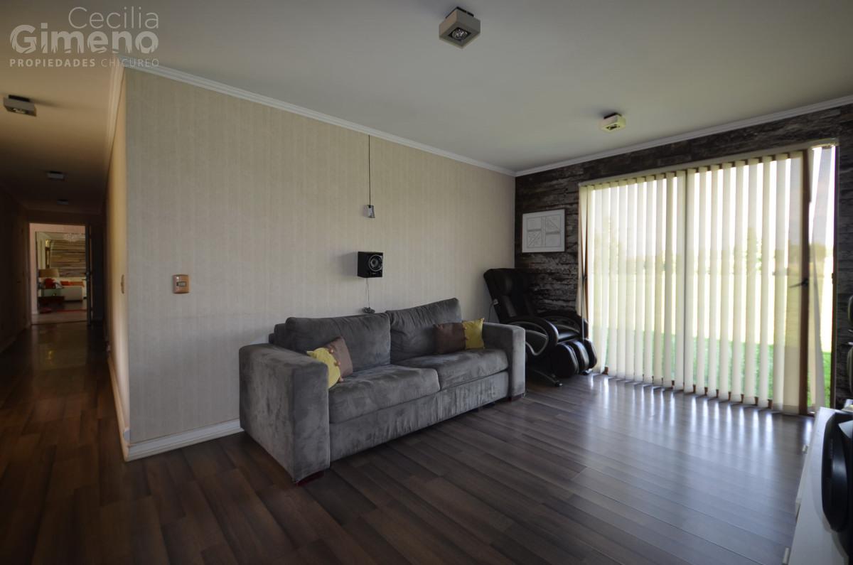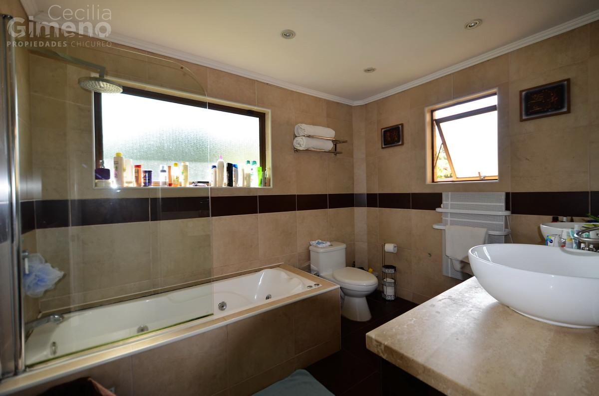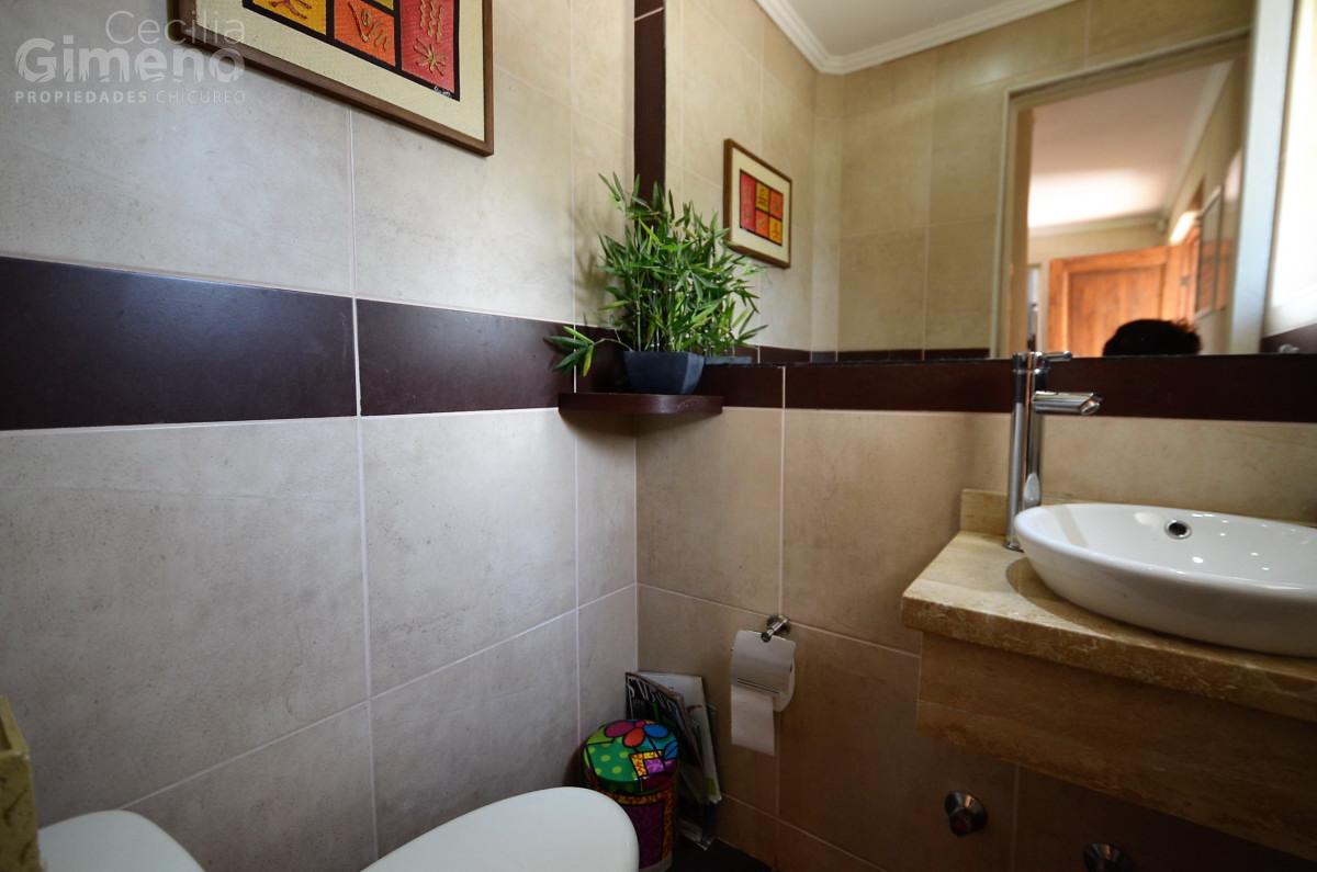 Hall de acceso, baño de visitas, gran living con comedor separado y estufa a leña. Cocina con comedor de diario, muebles con cubiertas de granito, equipada con encimera-horno-campana, dormitorio de servicio con baño, lavadero, patio de servicio.