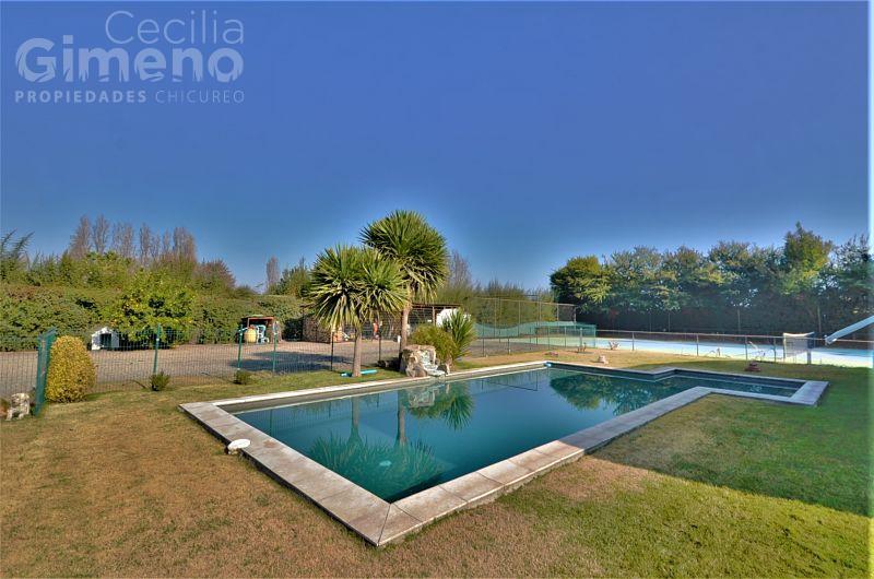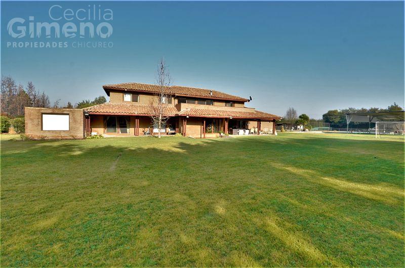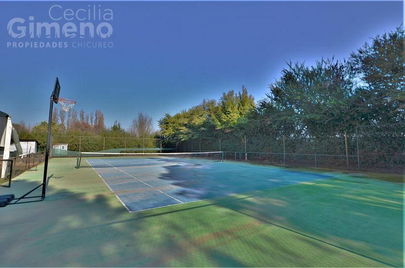 Portón de acceso automático, terrazas techadas, piscina, cancha de tenis, jardín con riego automático, cerco eléctrico.