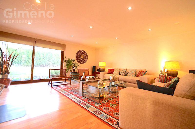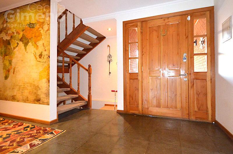 Gran hall de acceso, baño de visitas, living con estufa a leña, comedor separado y luminosos con piso flotante. Cocina equipada con encimera-horno-campana, comedor de diario, 2 dormitorios de servicio con baño, lavadero interior, patio de servicio.