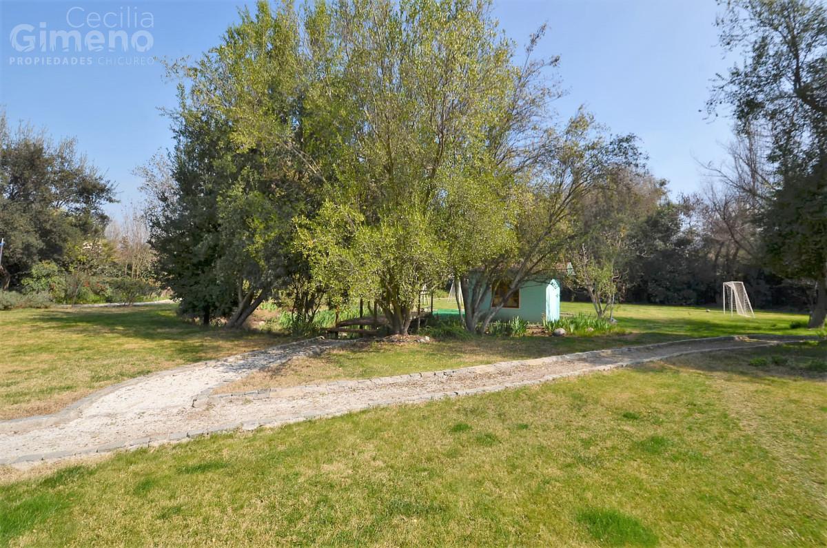 Portón de acceso automático, estacionamiento, terrazas, precioso jardín con riego, quincho con muebles en obra, piscina, cabaña independiente con 2 dormitorios, 1 baño y kitchenette.