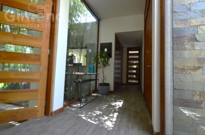 - hall de acceso con piso de porcelanato y vista al jardín