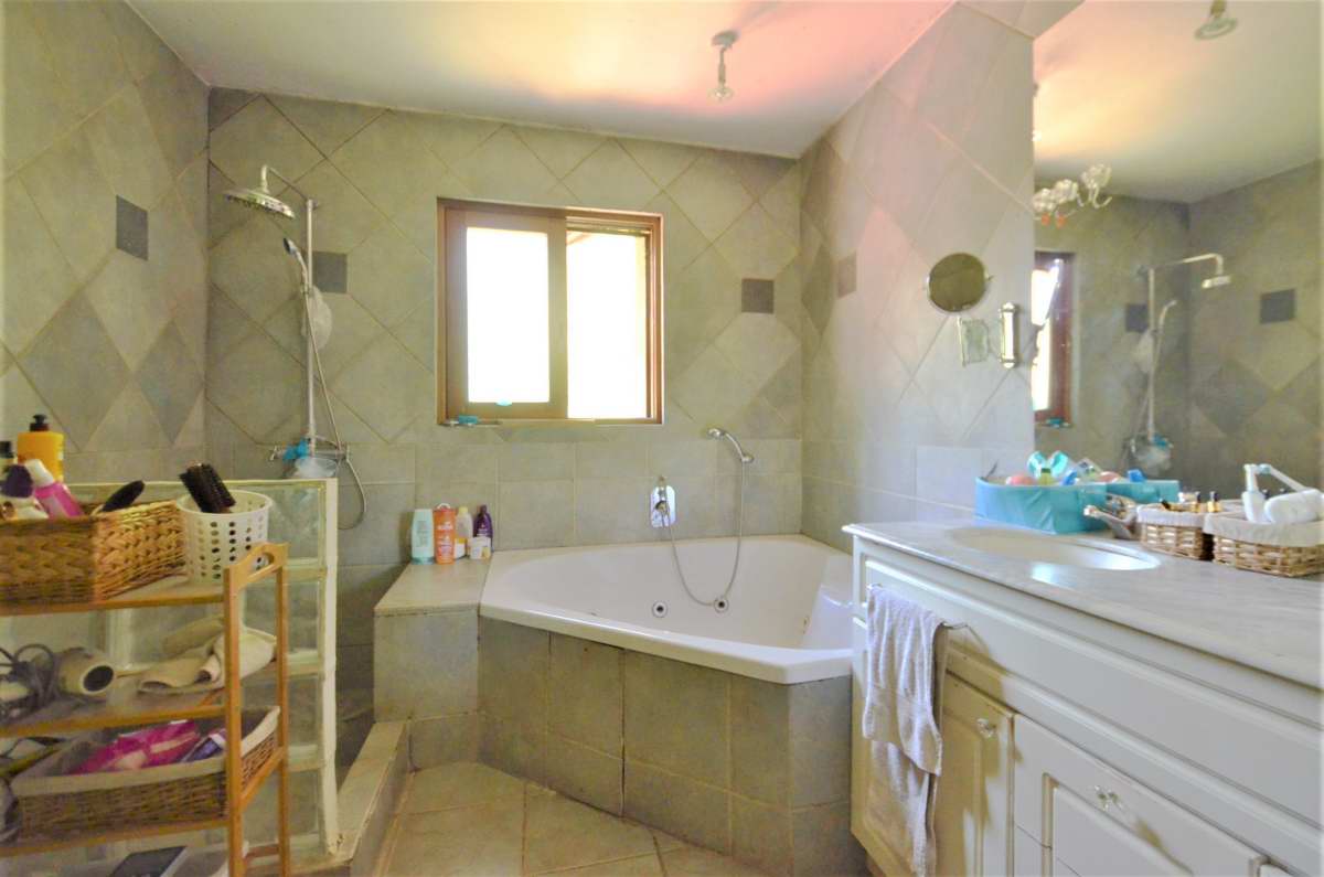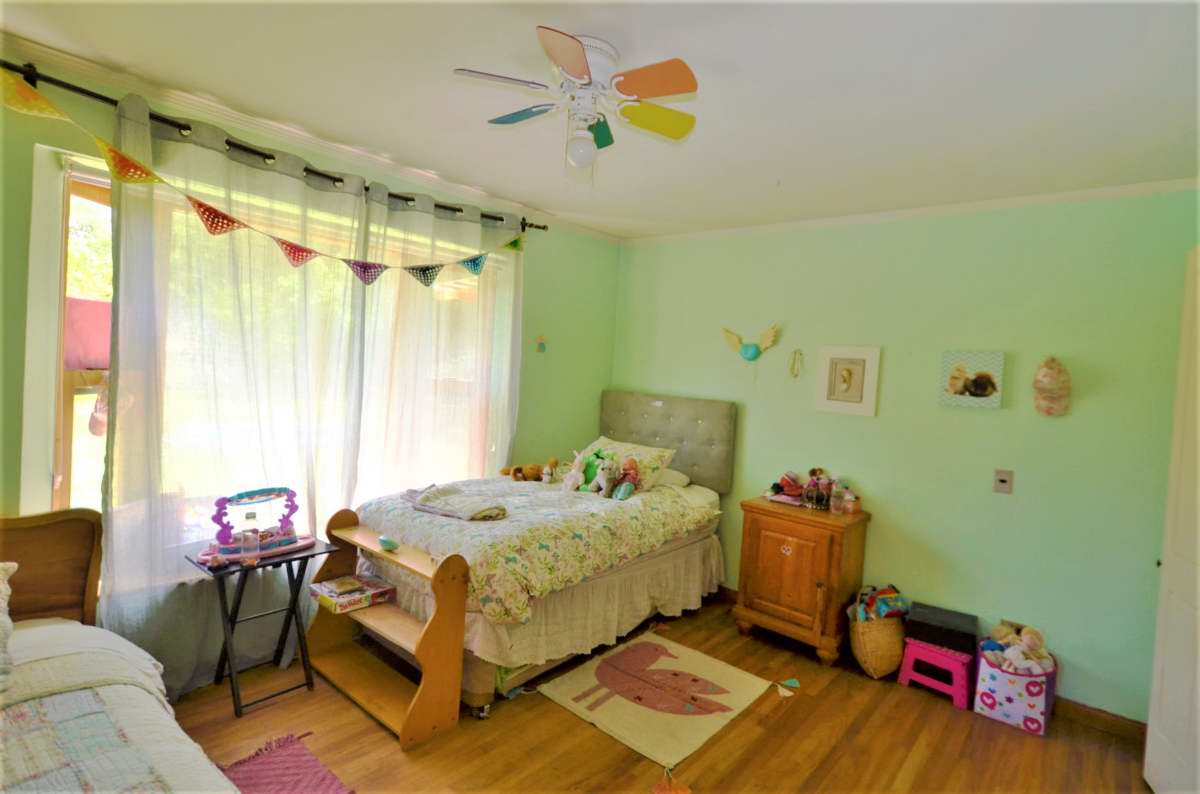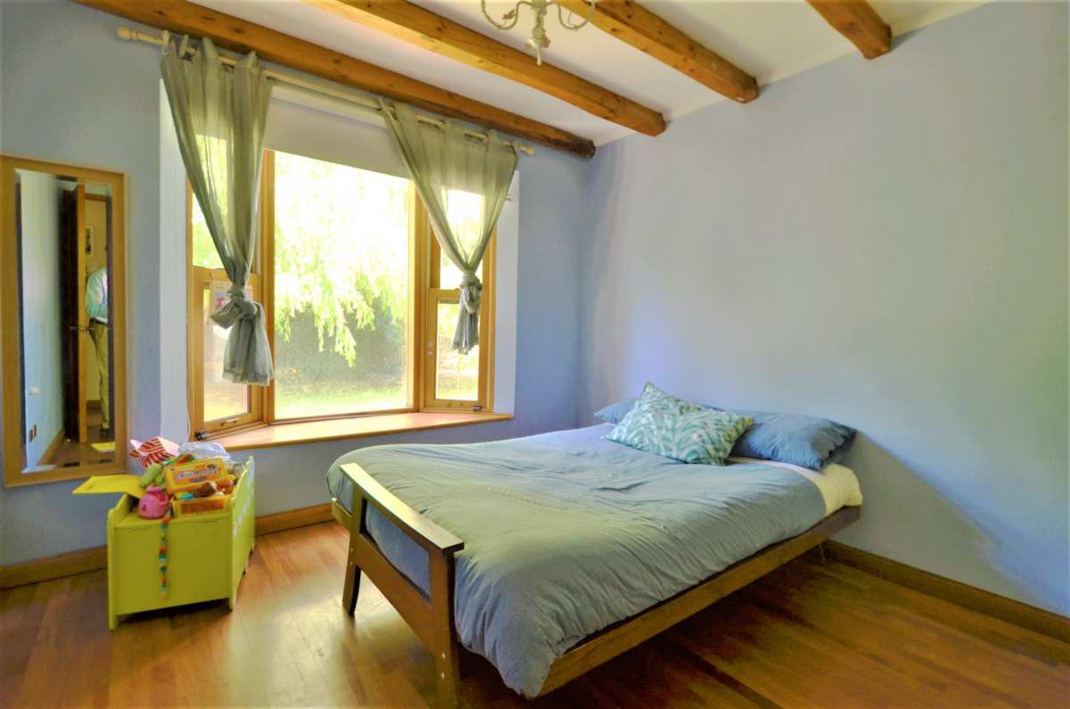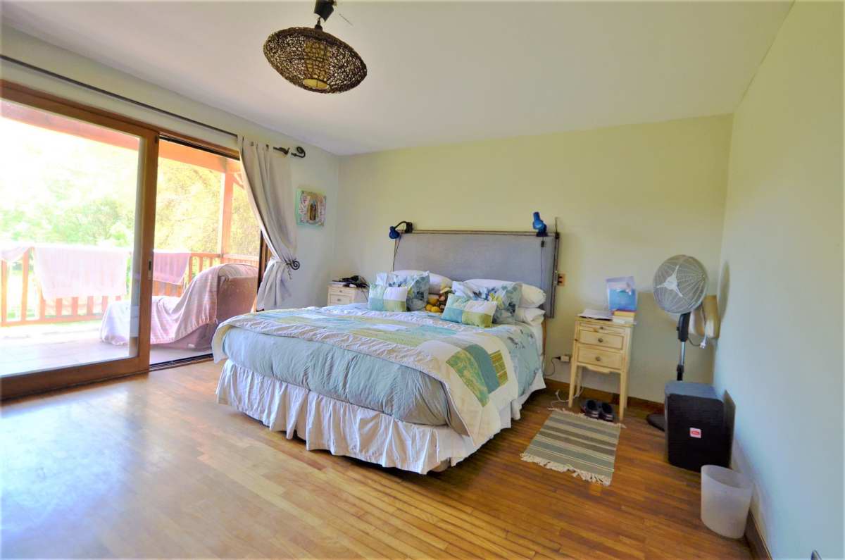 Amplio hall de acceso, baño de visitas, living con chimenea, piso de madera, comedor con piso de cerámica, vigas a la vista. Cocina amoblada y equipada con encimera-horno-campana, dormitorio de servicio con baño, lavadero.