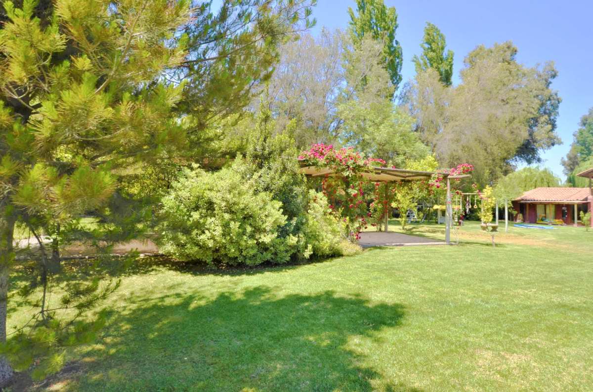 Acogedora casa chilena con bonito jardín en condominio con acceso controlado.