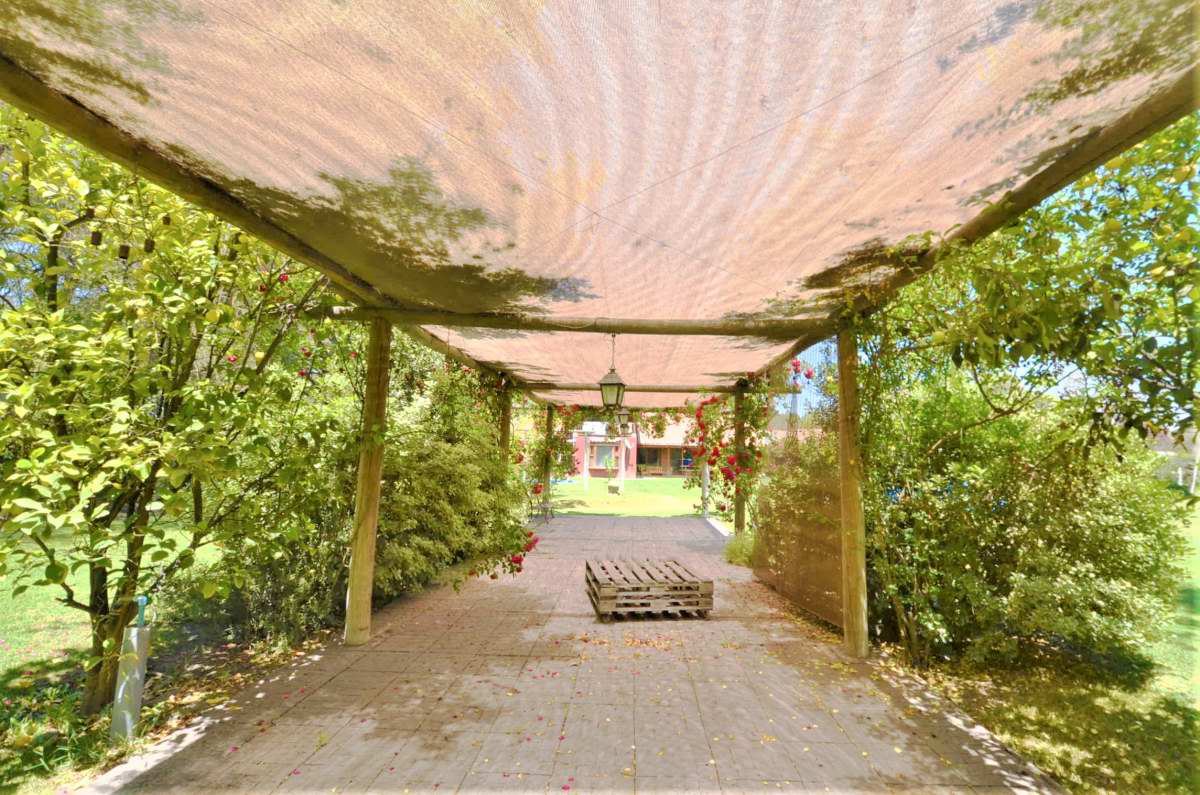 Portón automático, estacionamiento techado para 2 autos, bonito jardín con riego automático con árboles decorativos y frutales, juegos infantiles, terraza techada, canil.