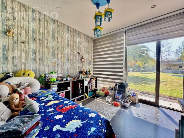 - dormitorio principal con baño en suite, walk in closet y salida al jardín