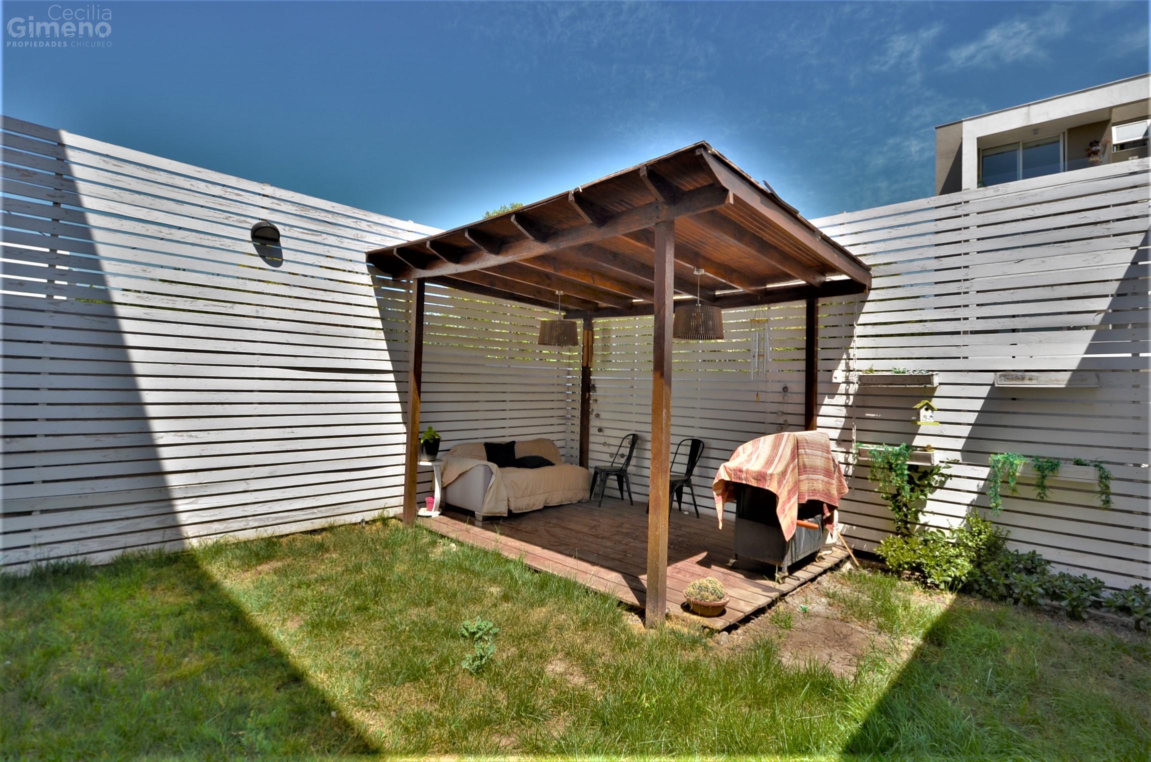 Primer piso: Hall de acceso living comedor con piso flotante y salida al jardín con terraza techada, cocina equipada y amoblada con comedor tipo isla con cubierta de granito, logia techada y cerrada con despensas a medidas, baño de visitas.