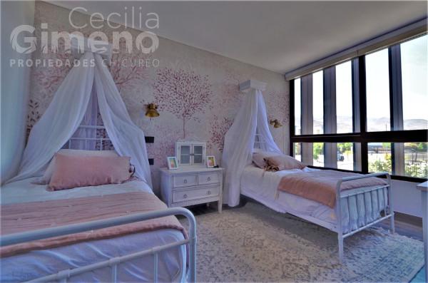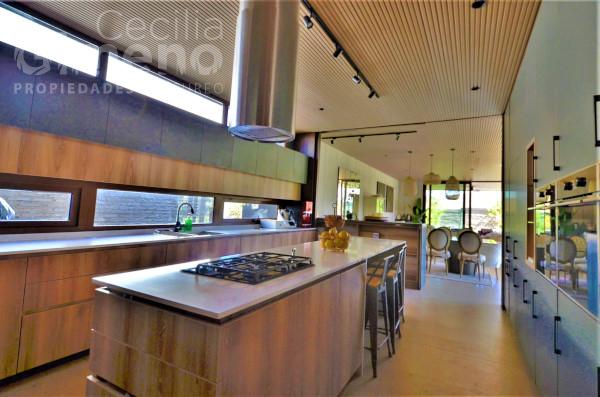 - cocina se integra al living-comedor con una puerta corredera, tiene mueble isla con encimera y campana, espacio para comedor de diario, 2 hornos eléctricos