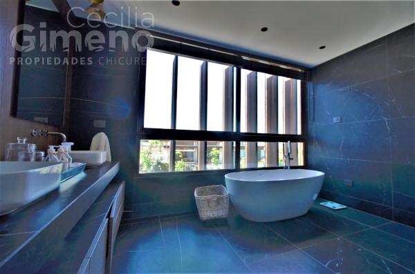 - dormitorio principal amplio con acceso directo al escritorio, baño en suite con vanitorio doble, tina, ducha con shower door, walk in closet
