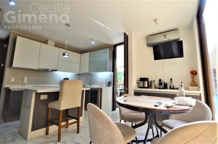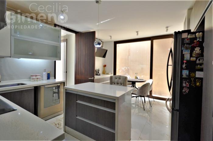 - cocina con mueble isla, equipada con encimera-horno-campana, espacio para comedor de diario