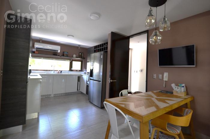 - cocina completamente integrada al comedor, equipada con encimera-horno-campana-microondas y comedor de diario