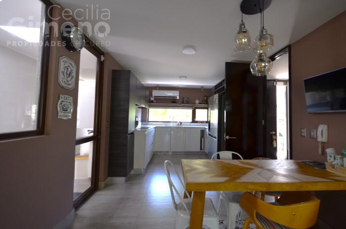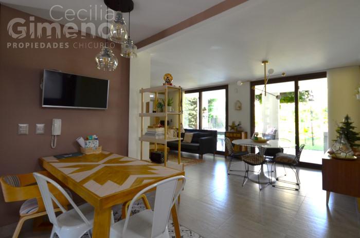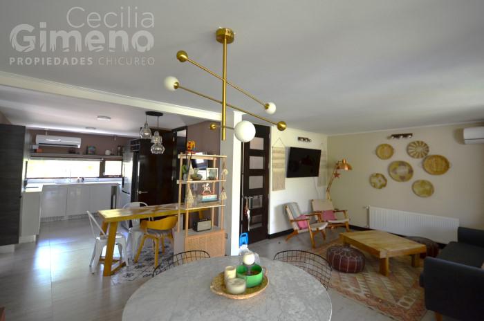 - living-comedor luminoso con piso flotante y salida a terraza techada