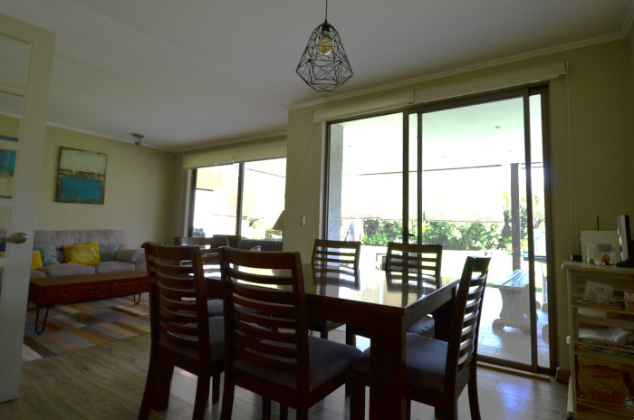 - living-comedor juntos con piso flotante y salida a la terraza